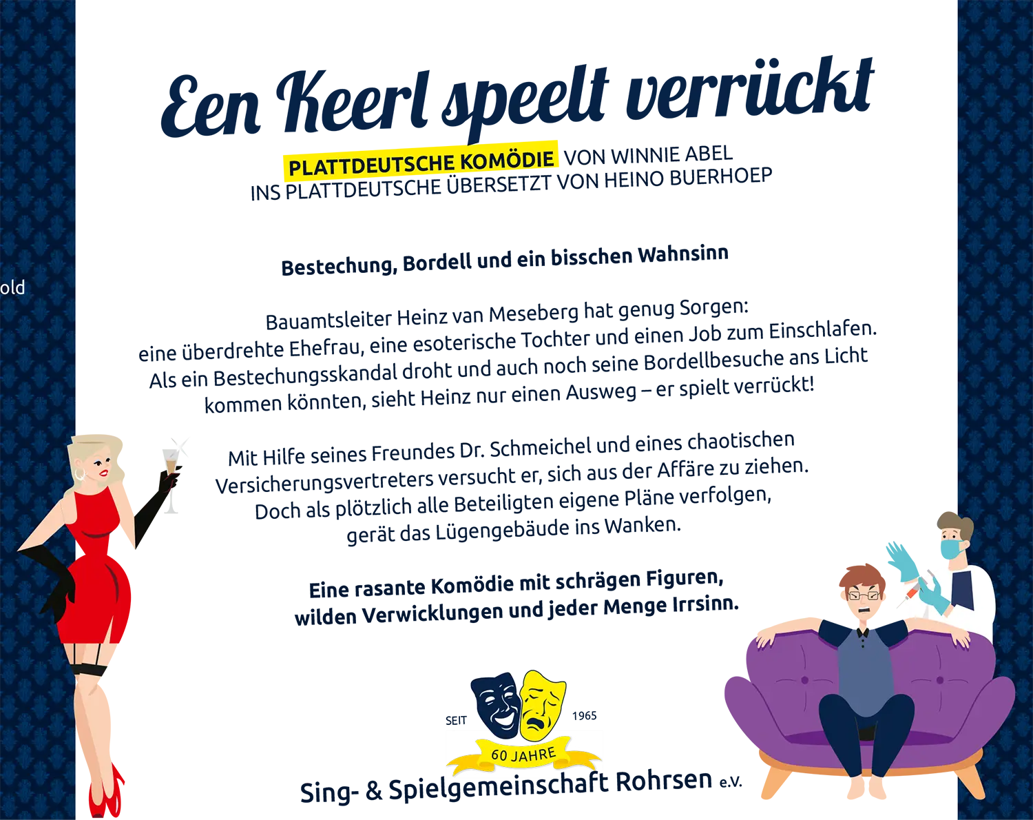Um den an uns selbst gestellten Ansprüchen und den Erwartungen der Zuschauer gerecht zu werden, haben wir für 2026 ein amüsantes, temporeiches und im Genre des plattdeutschen Theaters tiefsinniges Stück insziniert.
