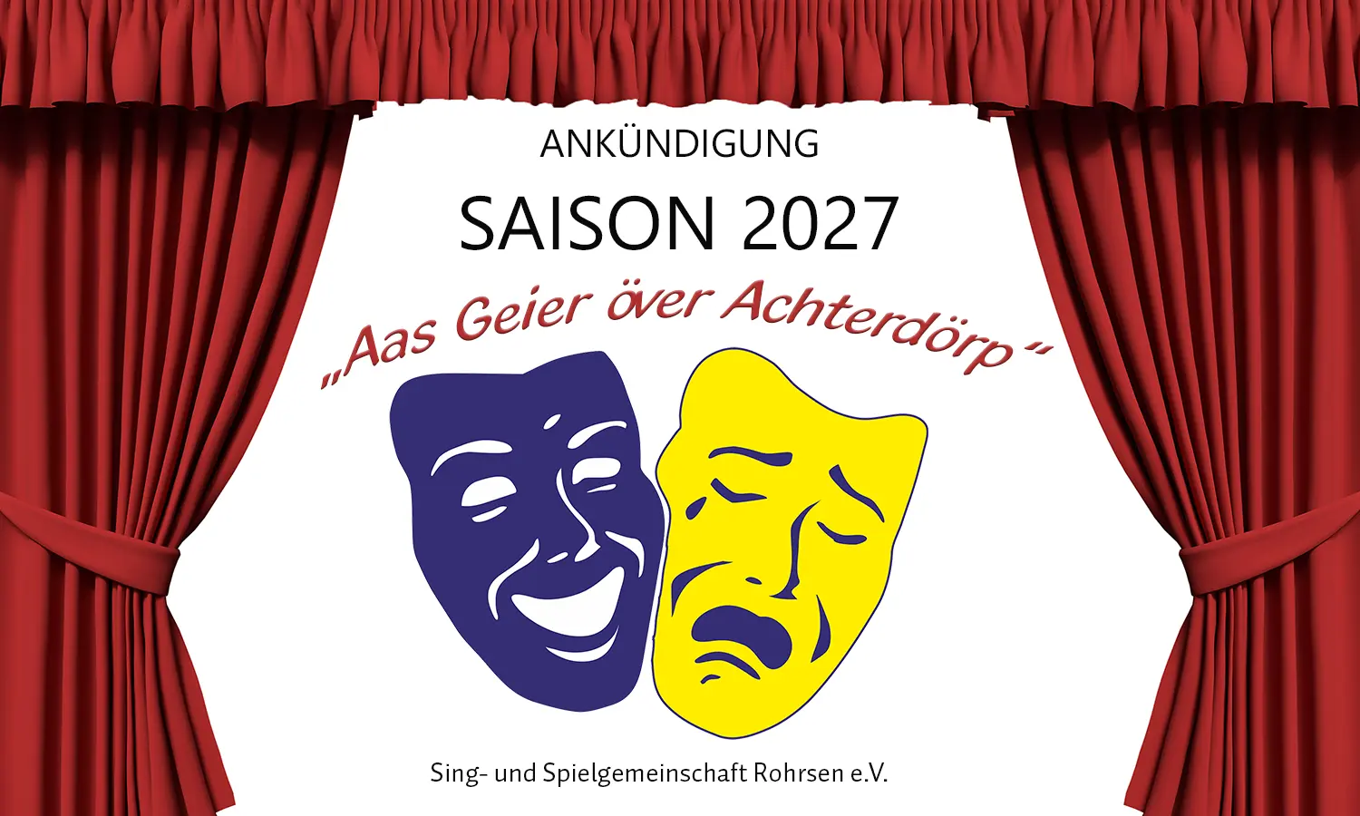 Um den an uns selbst gestellten Ansprüchen und den Erwartungen der Zuschauer gerecht zu werden, werden wir für 2027 ein amüsantes, temporeiches und im Genre des plattdeutschen Theaters tiefsinniges Stück inszinieren.